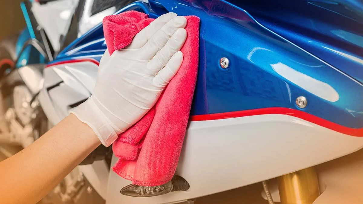 Gunakan shampo khusus motor dan kain microfiber agar tidak menimbulkan goresan. Setelah dicuci, keringkan hingga benar-benar bersih untuk mencegah noda air.